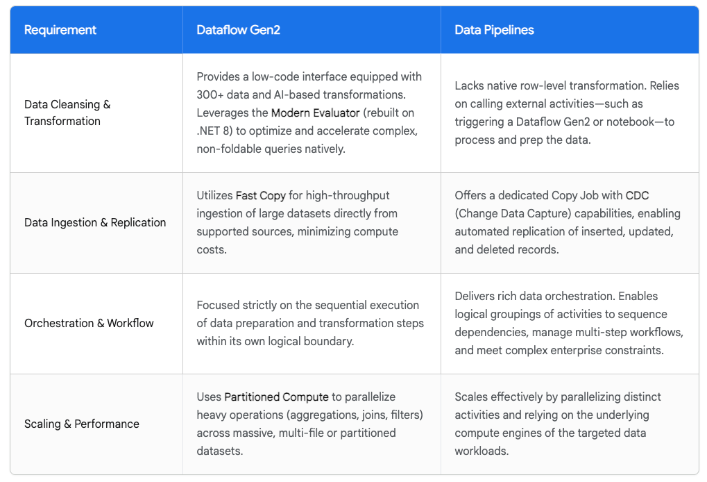 Data Movement Strategy: Dataflow Gen2 vs. Pipelines