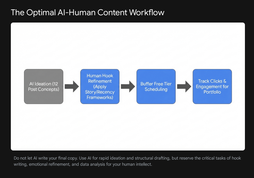 Schedule these manually edited posts into Buffer. Track the engagement metrics weekly. Document exactly which hooks generated clicks and comments. This data becomes the core of your portfolio.