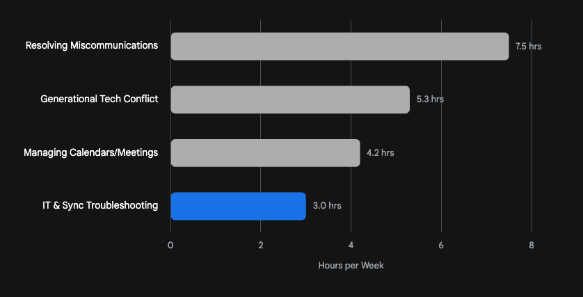 Project leads lose substantial time to software friction. Poor communication and software troubleshooting consume over a full workday each week.