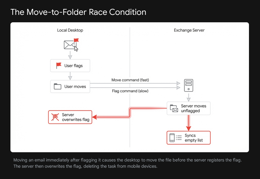 | Flag Race Condition | Desktop moves email before server registers flag | Task drops from mobile device |