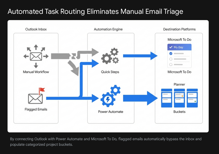 Inbox zero remains an obsolete concept for mid-sized project teams. Project leads at 250-person firms currently waste between $30,000 and $50,000 annually searching for lost emails and managing disjointed offline files. The core problem does not stem from email volume. The problem originates from a disconnected task architecture. When professionals flag an email in Microsoft Outlook, they expect that action to trigger a reliable sequence of events. Instead, flags scatter across local devices, offline sync gaps hide critical attachments, and users revert to building manual task lists. The solution requires linking Outlook directly to Microsoft To Do and Microsoft Planner using precise Quick Steps and Power Automate workflows. This specific technical method ensures flags appearing instantly everywhere.