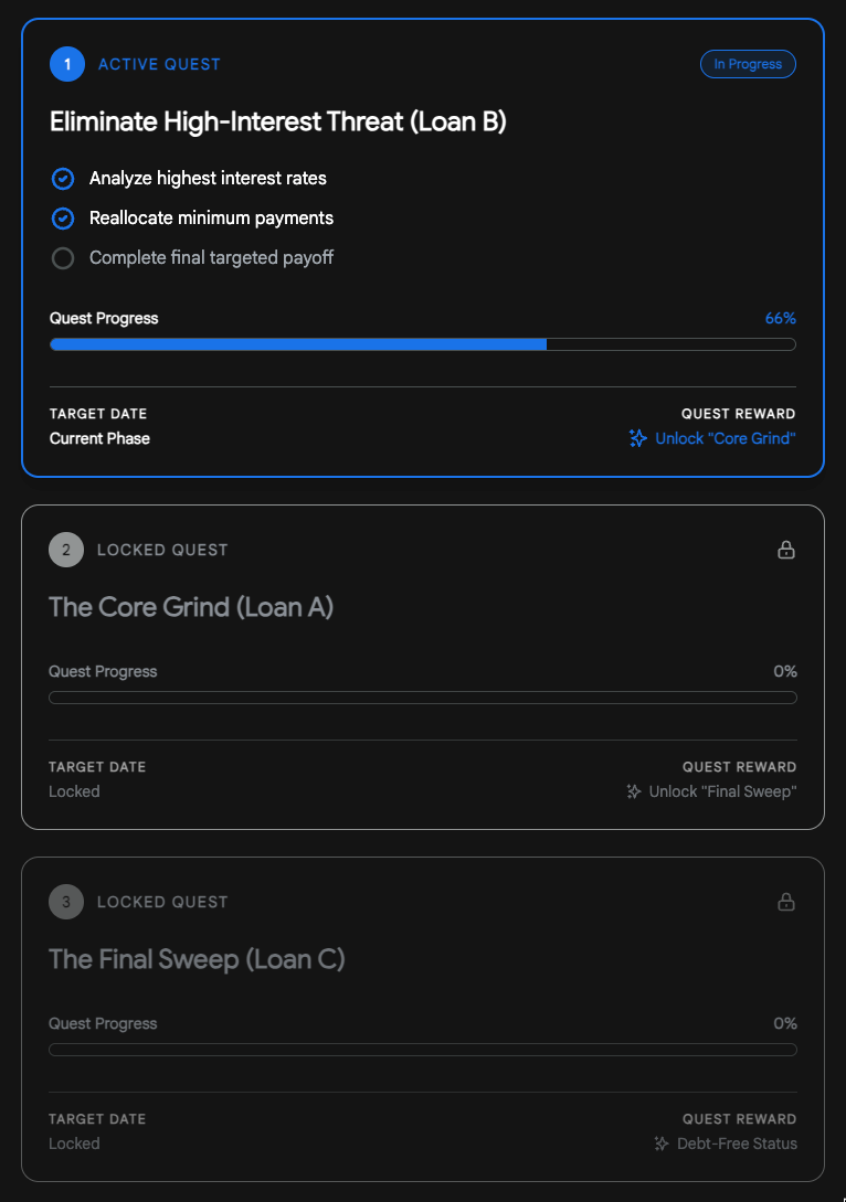 By instructing the AI to adopt the persona of a 'gamification expert,' complex amortization schedules are transformed into approachable, sequential milestones, improving financial adherence.