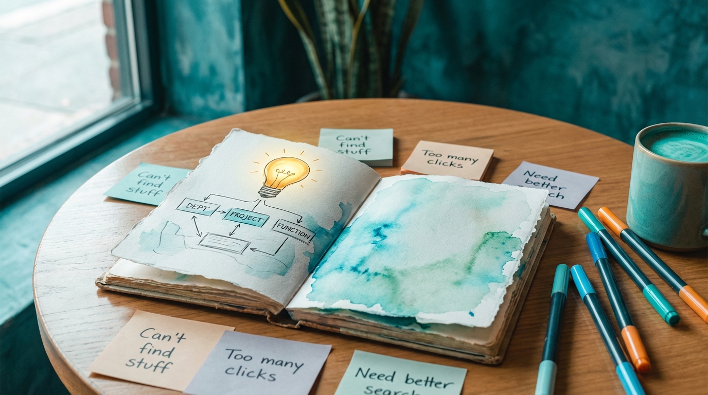 IT admins lack a decision framework for structuring SharePoint sites (departments, projects, functions, or hubs) that balances discoverability, save locations, and least-privilege permissions. Ad-hoc site proliferation creates siloed content, permission sprawl, and endless 'where do I save this?' tickets. A validated architecture pattern would cut support tickets by 50%, enforce governance, and make the intranet a daily tool.