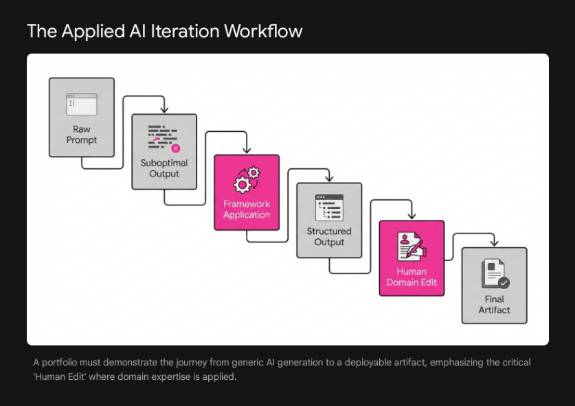 - Hypothesize: The portfolio details the candidate's anticipation of how the AI might fail. This proves foresight. The candidate notes, "I hypothesized the model would use overly technical HR jargon that the finance team would ignore".